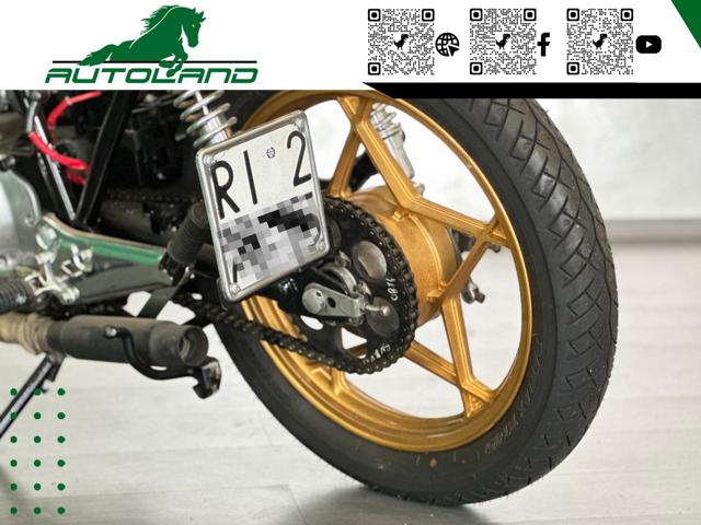 Spettacolare Suzuki GS 450 in versione Cafè Racer con Motore bicilindrico Twin che eroga una potenza di circa 50cv,serbatoio in condizioni perfette trattato con materiali specifici per garantirne la durevolezza nel tempo, in un bellissimo color bronzo adornato da strisce oro che riprendono il colore dei cerchi. Il faro è stato sostituito un con uno completamente Full Led come lo Stop posteriore dove ora trova spazio un'originale fascia Led con frecce integrate. La pompa del freno anteriore è stata maggiorata e sono state sostituite le pasticche.